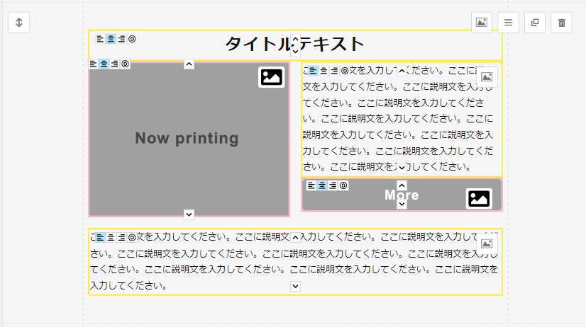 ブロックメニューをクリックすると、ブロックが追加されます。