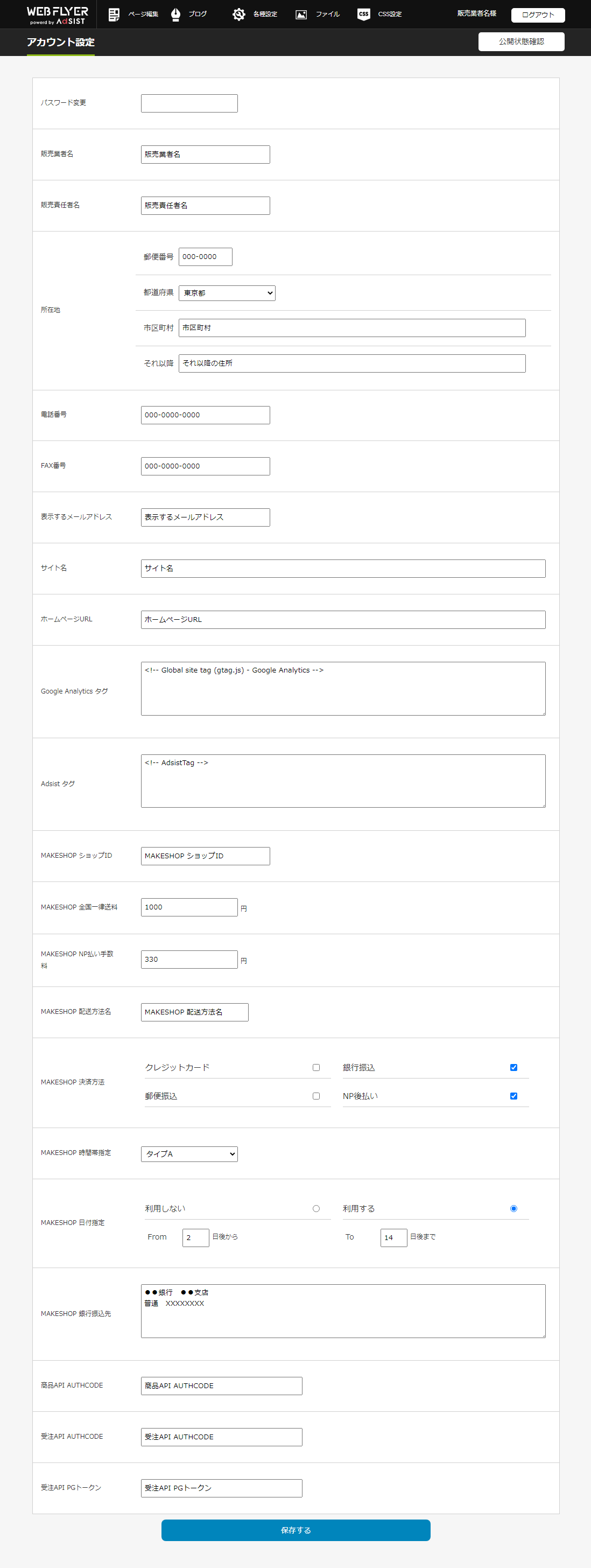 契約しているMAKESHOPの各種情報を設定します。