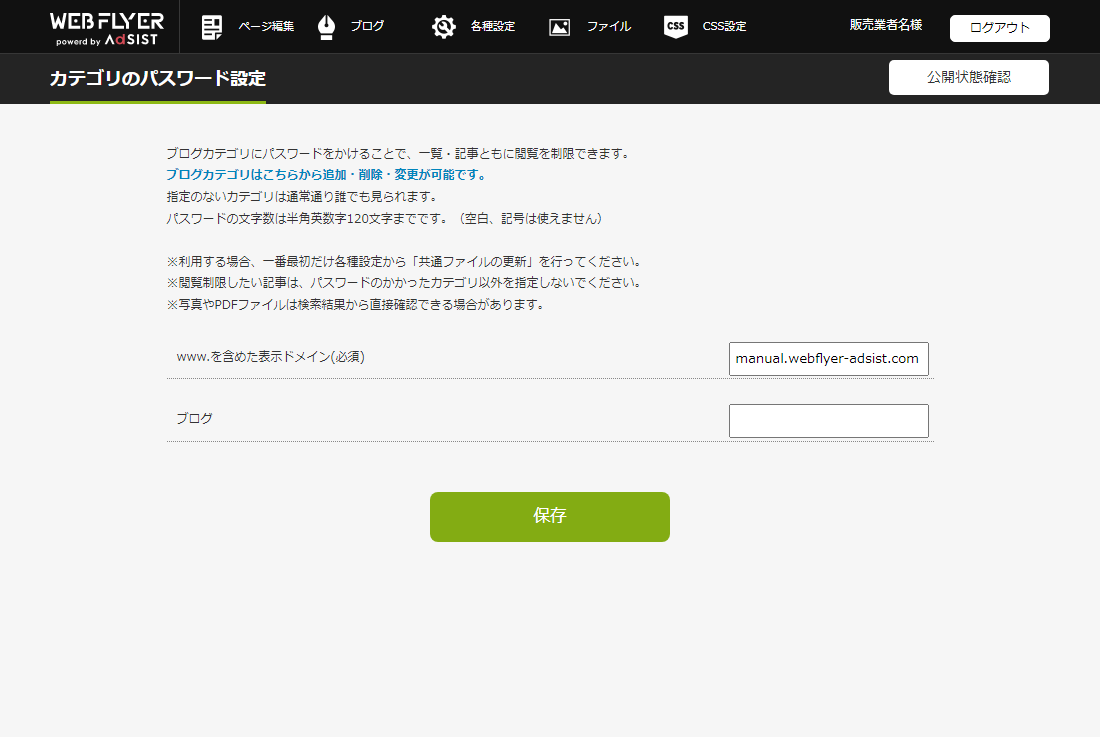 ブログカテゴリパスワード設定