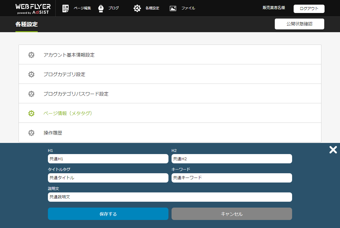 ページ情報(メタタグ設定)